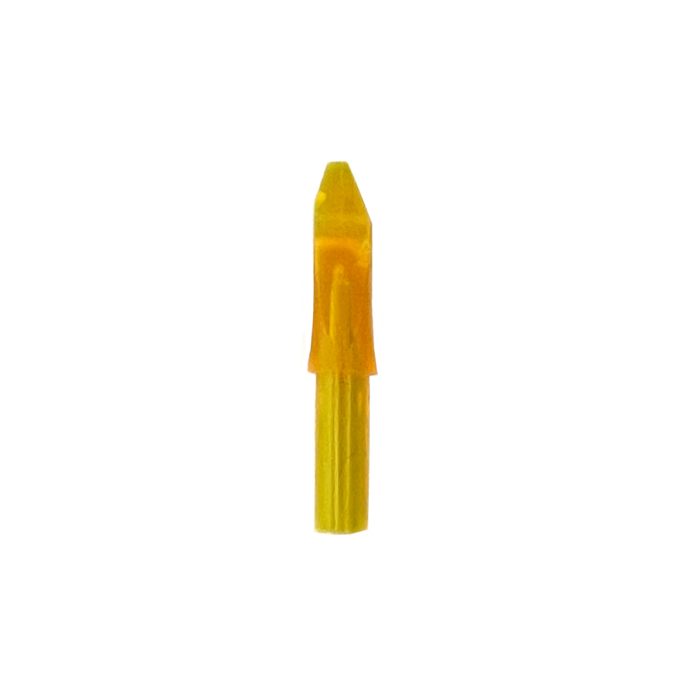 Diese Nocke ist asymmetrisch, eine asymmetrische Nocke ist eine Nocke, die oben und unten nicht gleich ist. Diese Nocken werden hauptsächlich von Recurve- und Barebow-Schützen verwendet, da sie die Sehne nicht symmetrisch ziehen. Mit einer asymmetrischen Nocke sorgen Sie dafür, dass der Pfeil die Sehne auf der rechten Seite verlässt und dadurch wird der Pfeilflug verbessert.