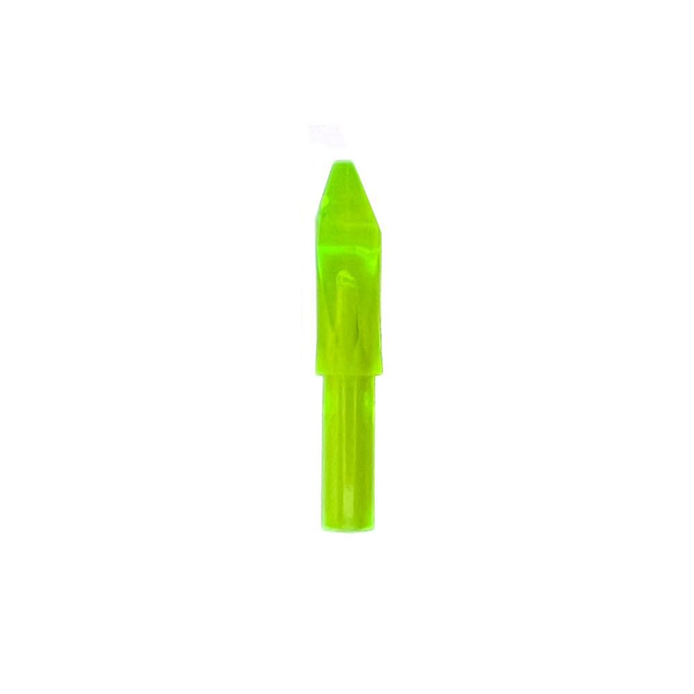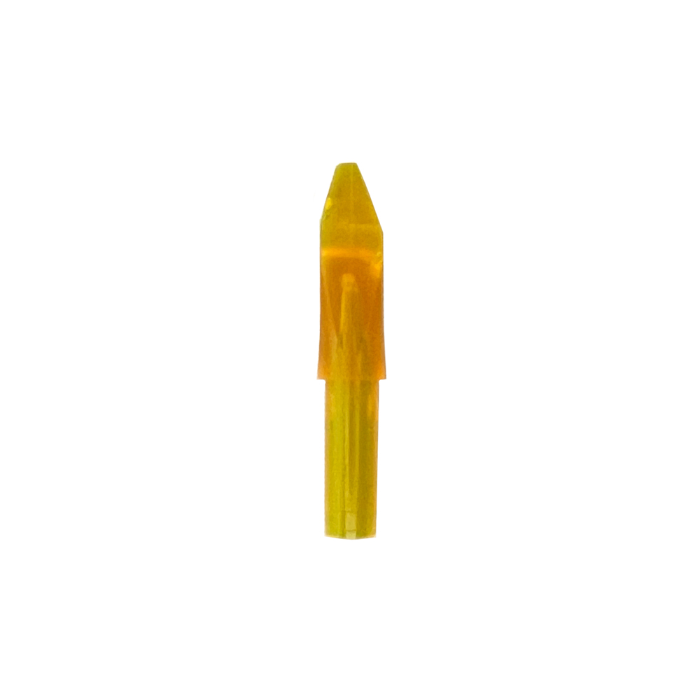 Diese Nocke ist asymmetrisch, eine asymmetrische Nocke ist eine Nocke, die oben und unten nicht gleich ist. Diese Nocken werden hauptsächlich von Recurve- und Barebow-Schützen verwendet, da sie die Sehne nicht symmetrisch ziehen. Mit einer asymmetrischen Nocke sorgen Sie dafür, dass der Pfeil die Sehne auf der rechten Seite verlässt und dadurch wird der Pfeilflug verbessert.