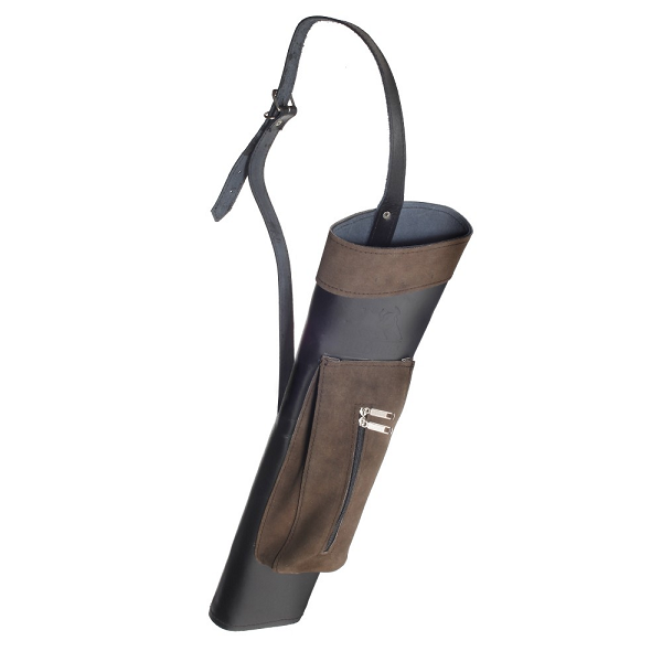 Robuster Rückenköcher aus Wildleder von Buck Trail in schönen braunen und schwarzen Farboptionen. Inklusive kleiner Tasche für Zubehör. Dieser Köcher ist 47 cm lang und eignet sich sowohl für Linkshänder als auch für Rechtshänder.